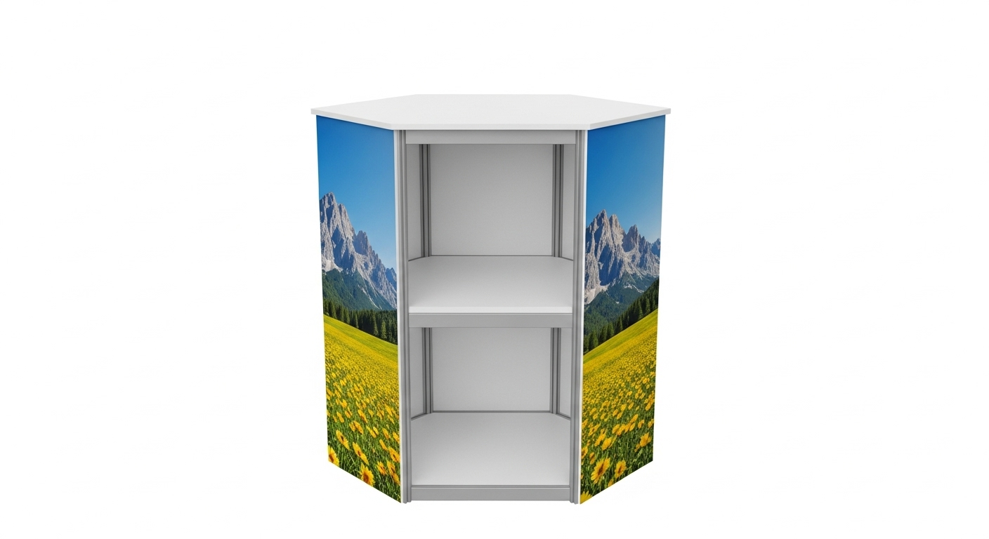 Özellikler           : Ürün tanıtımlarınızda kullanabileceğiniz şık bir üründür. Kurulumu kolay, polistren malzemeden üretilmiştir. Standart rengi beyazdır. Alınlık portatiftir. Baskı alanı tek fondan oluşur, arka kısımdaki raf sayesinde broşürlerinizi rahatça stoklayabilirsiniz.