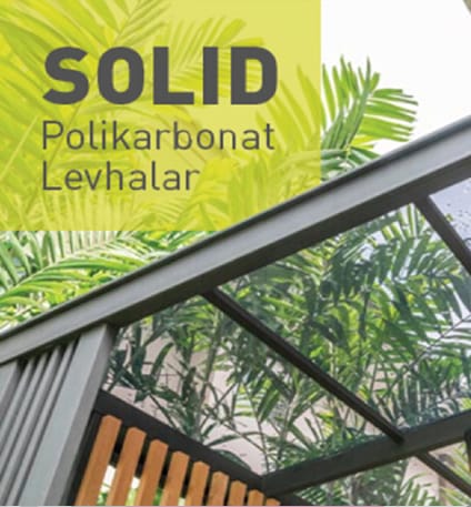 Solid PC Nedir : Yüksek kaliteye sahip, ekstrüzyon yöntemi ile şeffaf çekilmiş termoform polikarbon levhasıdır. Camın yarı ağırlığında olmasına karşın, darbeye karşı yüksek dayanıklılık gücüne sahiptir. Solid polikarbon levha, Pet-G’ye göre 2 kat, çekme pleksiye göre 10 defa daha fazla darbelere karşı dayanıklılığa sahiptir. Uygulama alanları; Reklam sektörü, seralar, kurşun geçirmez cam imalatı, otobüs durakları, ses bariyer sistemleri, iş güvenlik ekipmanları, elektronik sanayi, çatı aydınlatmaları, alış veriş merkezleri, okullar vss. Şık estetik uygulamalar için kullanılmaktadır.